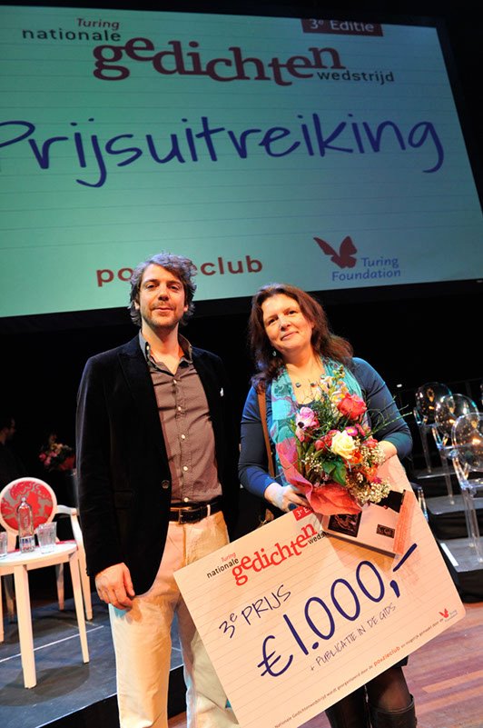 Eind januari 2012 waren de Vlamingen de grote winnaars van de Turing Nationale gedichtenwedstrijd. De eerste prijs van € 10.000 werd gewonnen door David Troch uit Sint-Denijs-Westrem (België) met zijn gedicht ‘Wij waren geen jongens’. De tweede prijs van € 1.500 was voor Kate Schlingemann uit het Friese Hartwerd met haar gedicht ‘Bemoeizorg’. Ik ontving de derde prijs van € 1.000 voor ‘Carne Vale’.